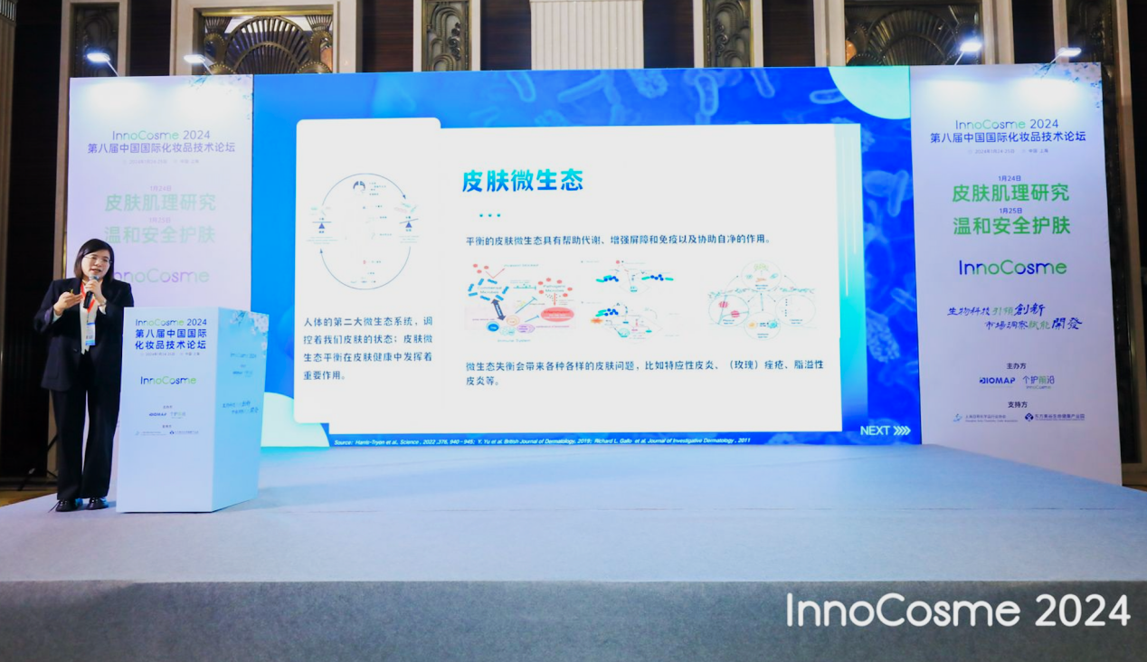 1月24-25日,InnoCosme 2024第八届中国国际化妆品技术论坛在上海举办,此次技术论坛以“生物科技引领创新,市场洞察赋能开发"为主题,特别围绕合成生物、科技创新、政策法规、皮肤机理等核心议题设置专场,深入探讨生物合成新原料开发的难点、应用转化与末来趋势。同时,分享皮肤肌理研究、递送技术创新、功效验证等热点话题,力求搭建一座学术研究与消费者科学传播的桥梁。