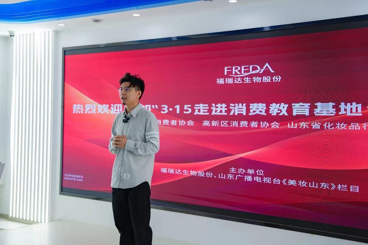 在福瑞达三楼展厅举行的交流会上,福瑞达生物股份副总经理白天明对各位嘉宾的到访表示热烈欢迎。白天明表示,在3.15国际消费者权益日走进福瑞达溯源,这场活动可谓意义非凡。一直以来,福瑞达生物股份秉承“品质为王”的匠心精神,坚持走“妆药同源”之路,用制药的理念标准来研发生产化妆品,打造的绿色工厂、透明工厂、智能工厂已经发展成为中国北方的化妆品产业高地,旗下的颐莲、瑷尔博士、善颜三个品牌荣登首批“好品山东”公共品牌名录,企业入选首批“山东省消费教育基地”。与此同时,公司也诚恳接受社会各界的监督。希望在大家的支持下,福瑞达生物股份能够为中国美妆的高质量创新发展做出更大贡献。