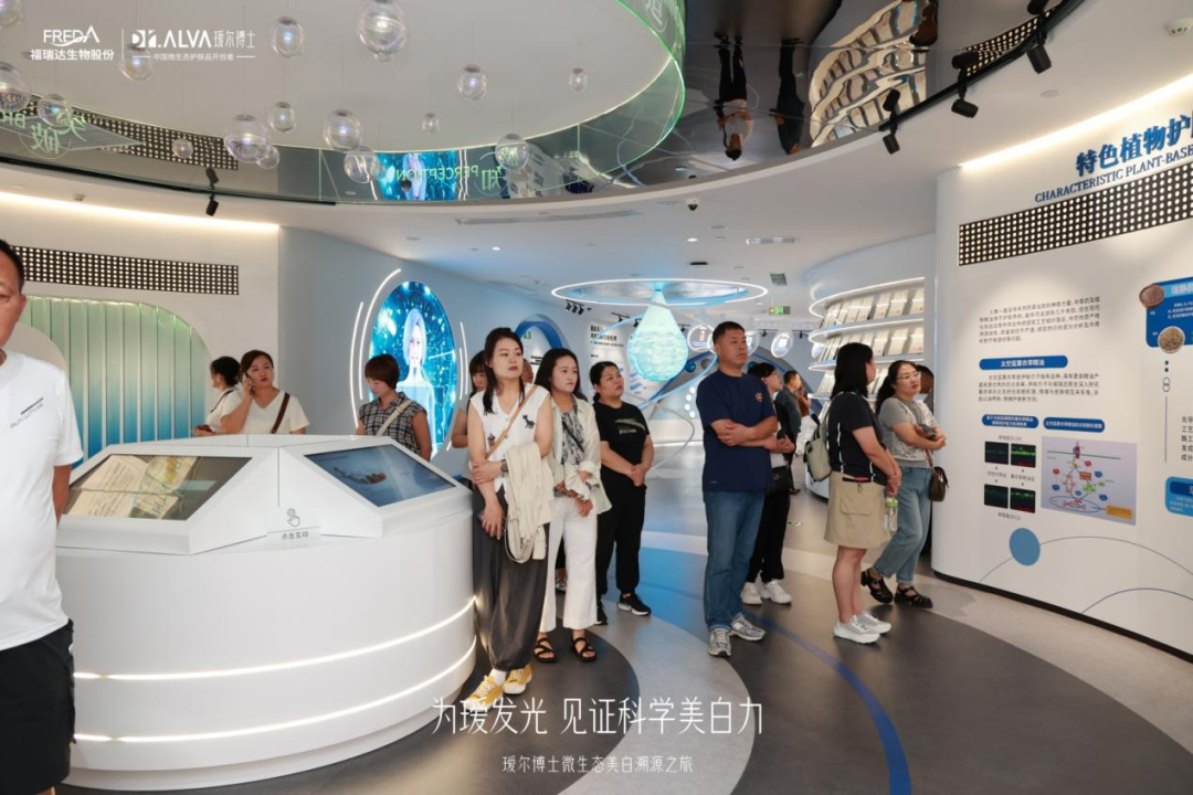 溯源之旅首站,客户们走进国内首个美妆主题科技馆 —— 福瑞达世界美妆科技馆。一进入展馆,大家便被富有未来感的科技氛围所吸引。借助工作人员的讲解以及馆内的展品,大家深入了解了世界美妆的发展历程,还有福瑞达为中国透明质酸产业所作出的贡献及取得的成果。此外,通过馆内趣味性十足的互动装置,大家切身感受到了瑷尔博士品牌的科技力量。