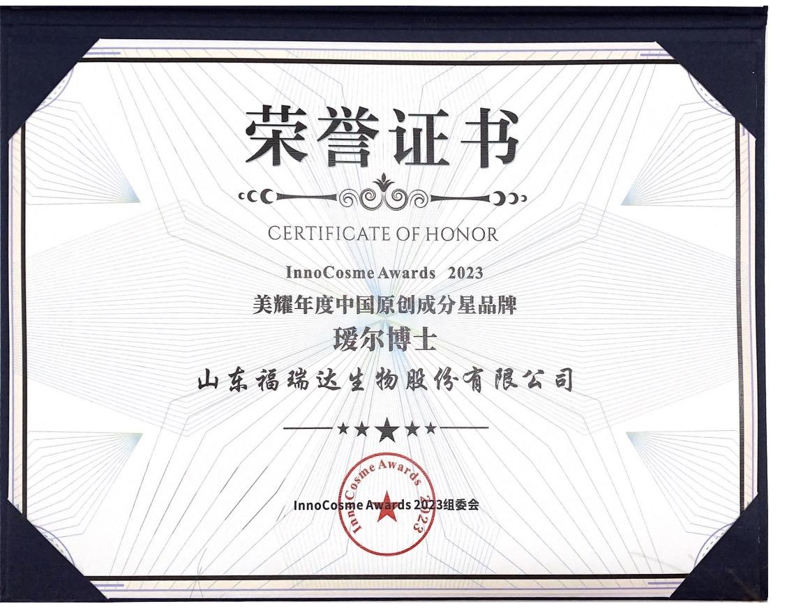 第一个成分奖项——第三届「InnoCosme美耀年度中国原创成分星品牌」奖项